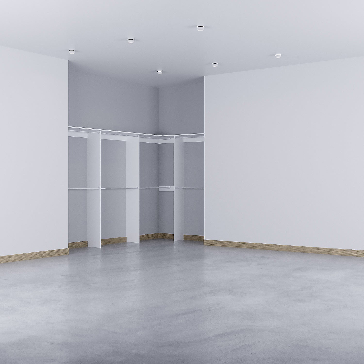 This L-shaped corner wardrobe model offers a variety of setup options to suit your needs, including drawer units, adjustable or fixed shelves, and shoe shelves. It also allows for all types of hanging garments, making it a perfect solution for your wardrobe storage needs.