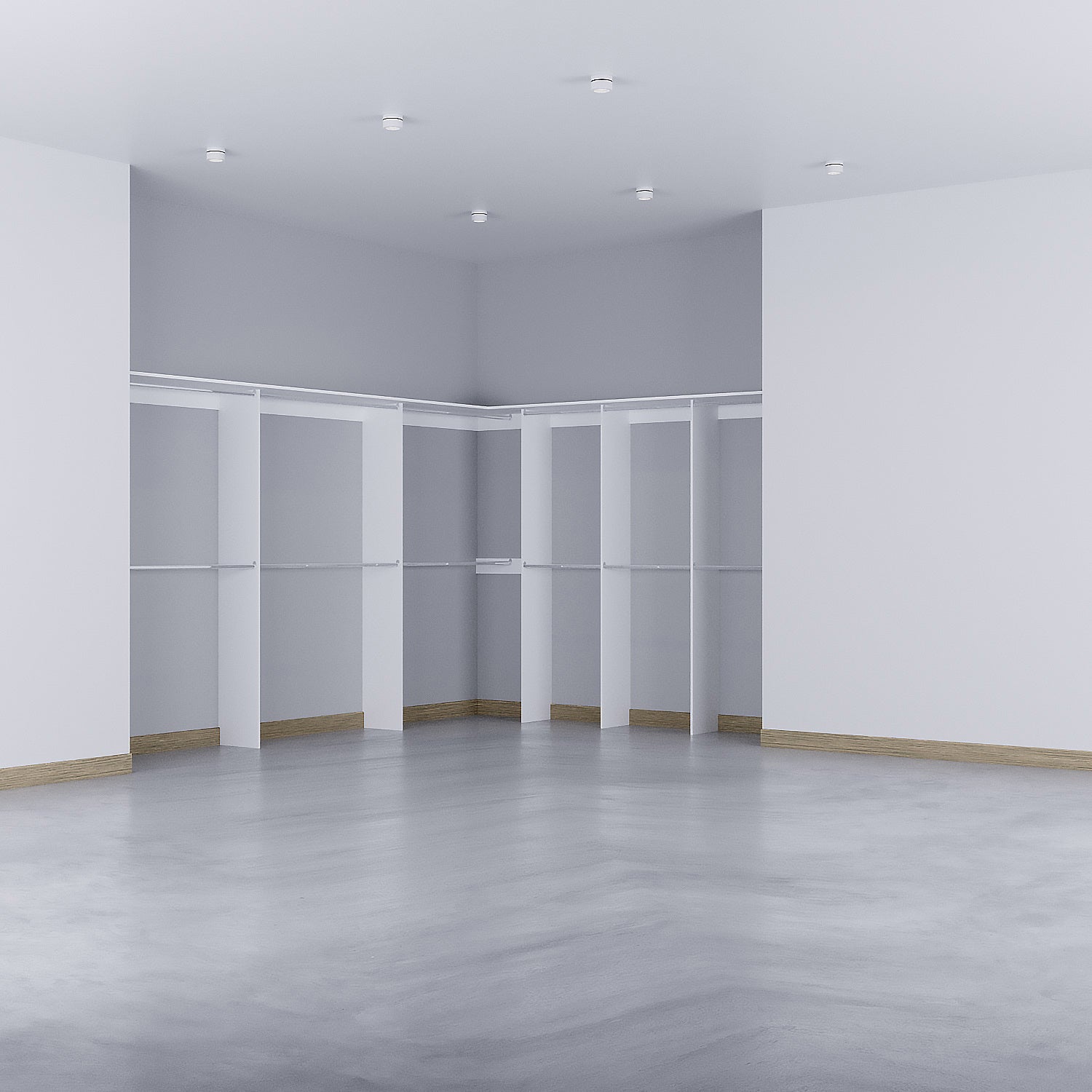 This L-shaped corner wardrobe model offers a variety of setup options to suit your needs, including drawer units, adjustable or fixed shelves, and shoe shelves. It also allows for all types of hanging garments, making it a perfect solution for your wardrobe storage needs.