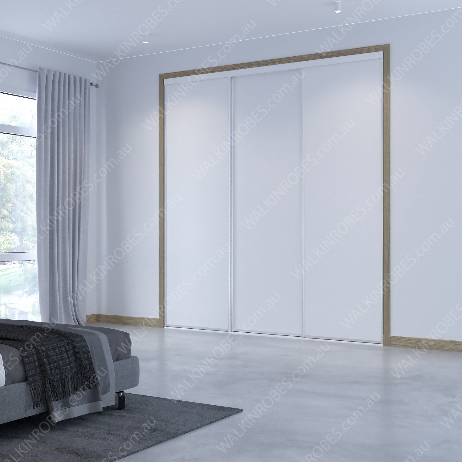These 3 Vinyled sliding doors (W25H27) add a stylish and functional touch to any wardrobe. Make the most of your space with the framed Vinyls, which provide a full view with clear visibility. Perfect for creating a sleek, modern look.